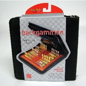 - Travel size Backgammon game in leatherette travel case. 2 players. Ages 8 plus.